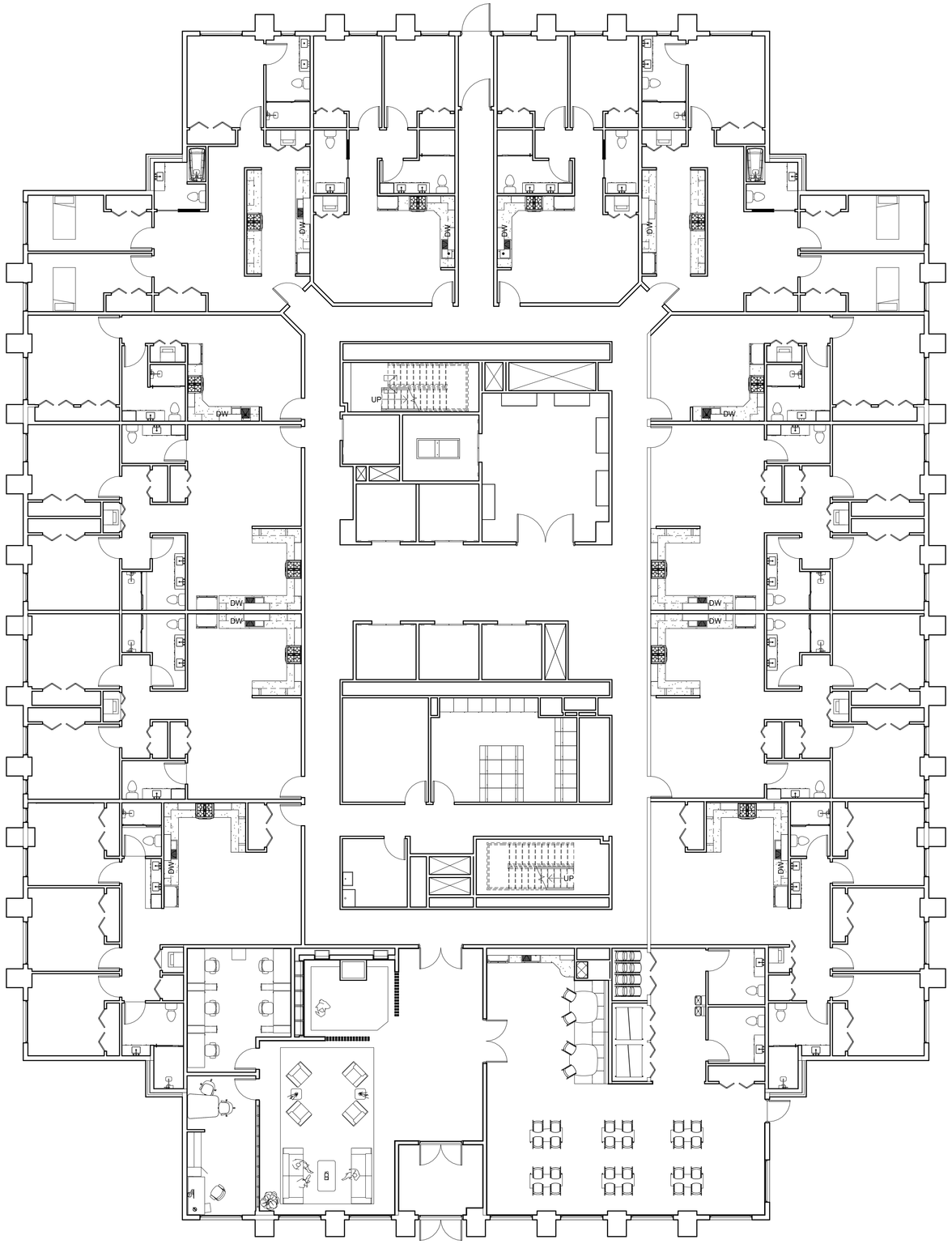 The focus of my senior studio project is to design a multi-story apartment complex located in Green Bay, Wisconsin. It will showcase common living spaces within the building as well as different room types to accommodate the needs of surrounding communities.